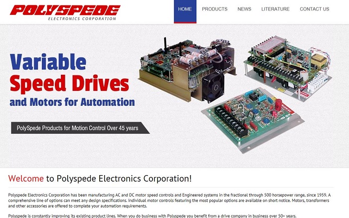 Polyspede Electronics Corporation has been manufacturing AC and DC motor speed controls and Engineered systems in the fractional through 500 horsepower range, since 1959. A comprehensive line of options can meet any design specifications. Individual motor controls featuring the most popular options are available on short notice. Motors, transformers and other accessories are offered to complete your automation requirements.
